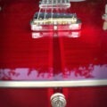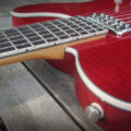 The body here is alder with padauk and maple centre, and bookmatched flame maple top. Chambered and quite slimline at 39mm thick. This guitar weighs 6 lbs.